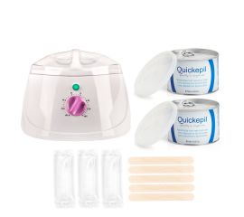 the kit includes: - 150w wax heater - 400 ml can wax - epilation strips 20 pieces - 3 packs - wooden spatula for applying wax - 5 pcs. - 100 pcs foil gloves heater for can of wax.  device for heating the depilatory wax in a can with a capacity of 400 or 500 ml....