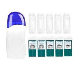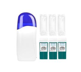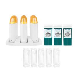 the kit includes: - trio wax heater - azulene wax roll - 3 pcs - epilation strips 20 pcs - 5 packs - 100pcs foil gloves a device for heating 3 wax depilation cartridges. each wax can be heated separately. aesthetic and ergonomic shape makes it easy to hold...