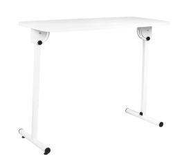 solid and functional cosmetic desk - perfect for mobile offices.  -stable - self-locking legs at an angle -white color -top covered with 2mm PVC tape -large work area - table top dimensions: 100cm x 50cm -height 78 cm - (folded) 15.5 cm -weight about 9.5 kg -additional leg...