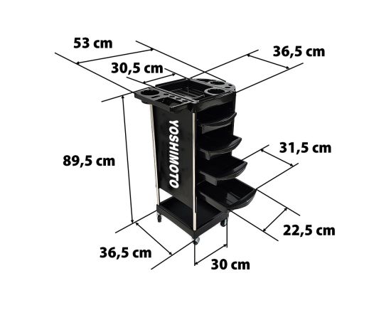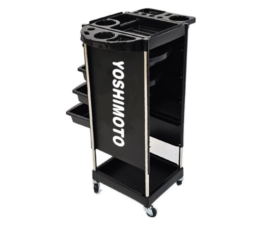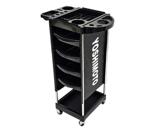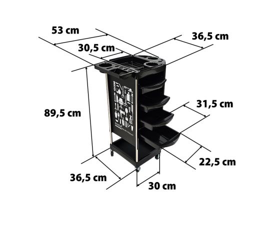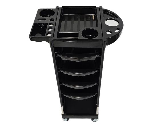 Είναι κινητό, πολύ ευρύχωρο και μπορεί να χρησιμοποιηθεί τόσο σε κουρεία όσο και σε κομμωτήρια. Είναι εξοπλισμένο με πολλαπλούς αποθηκευτικούς χώρους και μεταλλικά αξεσουάρ.