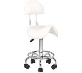 a comfortable, stable cosmetic stool with a backrest, with a profiled seat, on a five-star base with plastic wheels. available in white, a necessary piece of furniture in a beauty salon. package dimensions 40x40x23