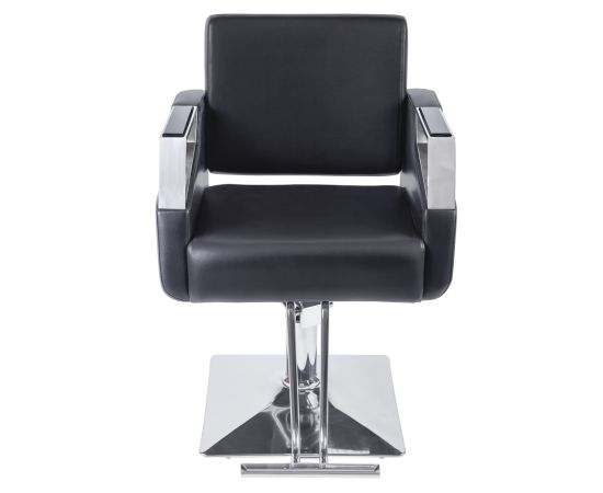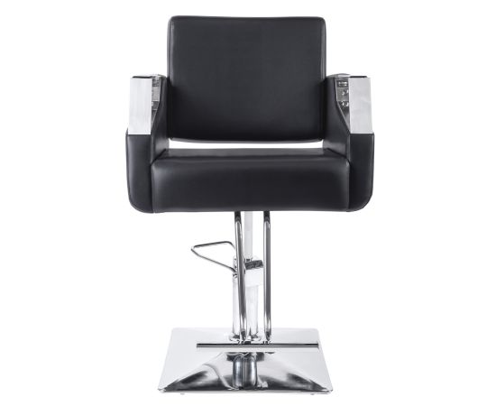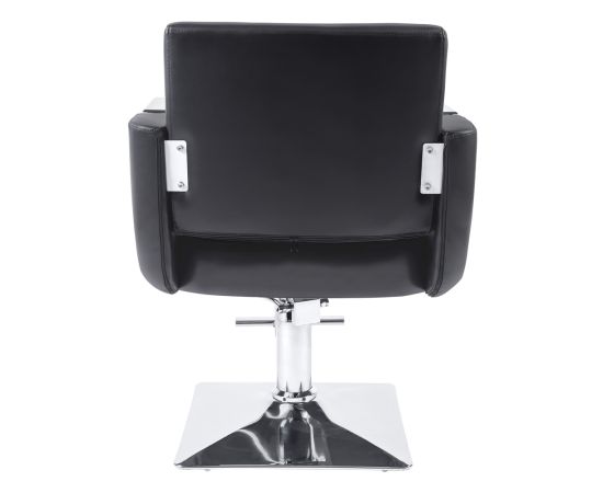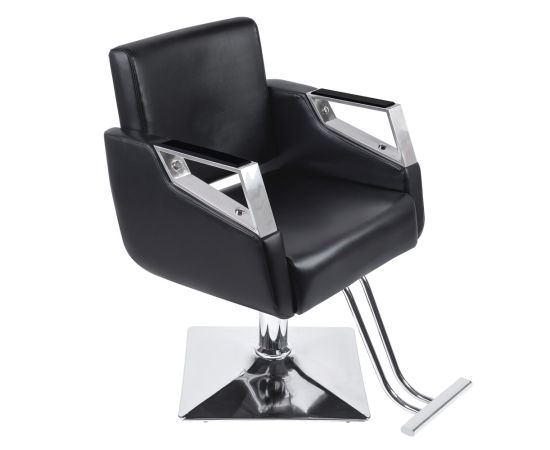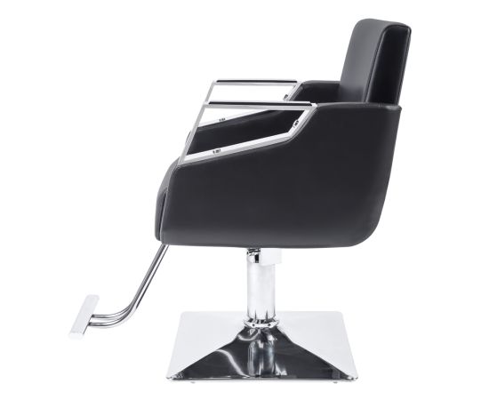 Η καρέκλα είναι ιδανική για κάθε κομμωτήριο. Κατακτά με το κομψό του στυλ, και το μαύρο οικολογικό δέρμα με το οποίο είναι τυλιγμένο θα ταιριάζει σε κάθε διακόσμηση. Είναι εξοπλισμένο με στήριγμα για την τοποθέτηση των ποδιών, που θα το κάνει πολύ άνετο για τον πελάτη. Κατασκευάζεται και με λαβή για ρύθμιση ύψους.