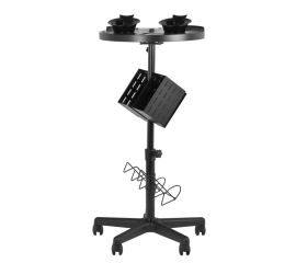 black hairdressing assistant, has many compartments for hairdressing assortment. stable construction will ensure long-term use. table set on guided wheels, thanks to which the tools will always be at hand. the helper has a built-in timer for timing. helper in parts for self-assembly.