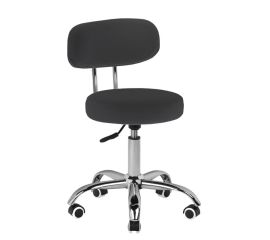 comfortable cosmetic stool made of ecological leather, perfect for a pedicure. stable structure set on a five-star base, with rubberized wheels, available in black.  hydraulically controlled height.