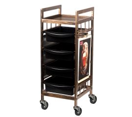 two-sided hairdressing assistant in old gold color, with 4 litter boxes and holders for hairdressing accessories. stable construction will ensure long-term use. table mounted on rubber wheels, thanks to which the tools will always be at hand. Gold elements are coated with lacquer....