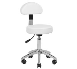 cosmetic stool for pedicure basic 304p white 1 pc comfortable cosmetic stool, stable on a five-star base, with rubberized wheels, removable backrest, white, necessary piece of furniture in beauty salon. dimensions: - seat dimensions, diameter 32 cm - height min. 38 cm - height...