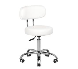 comfortable cosmetic stool made of ecological leather, perfect for pedicure. stable structure set on a five-star base, with rubberized wheels, available in white.  hydraulically controlled height. package dimensions: 55 * 49 * 40