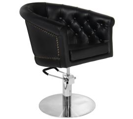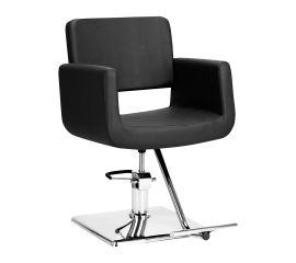a modern hairdressing chair with a unique design, perfectly suited to modern salons. specially contoured to provide the client with a comfortable position during the treatment. adjustable in the vertical plane. very stable. upholstery made of high-quality, smooth eco-leather. black color.