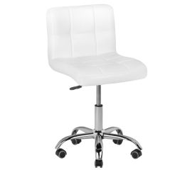 modern white cosmetic chair. a very comfortable seat with a modern look and nice stitching. high-quality eco-leather guarantees easier care of the furniture. the seat is adjustable up and down. rubber wheels.  technical data: seat dimensions 37x45cm backrest height 30cm seat...