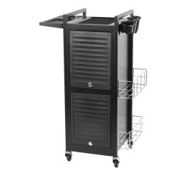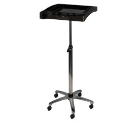 black hairdressing assistant. stable construction will ensure long-term use. table set on guided wheels, thanks to which the tools will always be at hand.  helper with parts for self-assembly. packaging dimensions: 50x53x18 cm