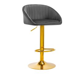 A designer and modern bar stool that will be perfect at the reception or at home. Equipped with a pneumatic lift for smooth height adjustment and a comfortable leg support. - Grey colour - Gold leg and base - Height adjustment - Gas lift - Full 360 degree rotation - Comfortable seat trimmed...
