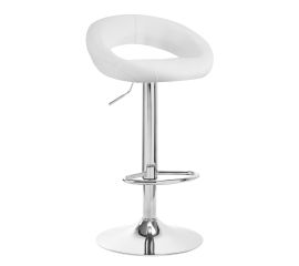 A designer and modern bar stool that will be perfect at the reception or at home. Equipped with a pneumatic lift for smooth height adjustment and a comfortable leg support. - White color - Chrome leg and base - Height adjustment - Gas lift - Full 360 degree rotation - Comfortable seat trimmed...