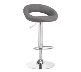 A designer and modern bar stool that will be perfect at the reception or at home. Equipped with a pneumatic lift for smooth height adjustment and a comfortable leg support. - Grey colour - Chrome leg and base - Height adjustment - Gas lift - Full 360 degree rotation - Comfortable seat trimmed...