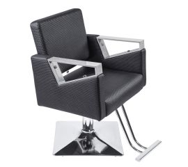 Stylish hairdressing chair. Very comfortable, ideally suited to the interiors of elegant rooms. Adjustable in the vertical plane. Very stable and solid. The upholstery is made of the highest quality grey eco-leather. The elegance of this armchair is complemented by the silver finish of the base.