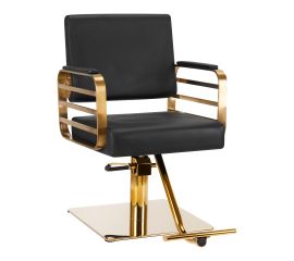 Stylish barber chair. Very comfortable, ideally suited to the interiors of elegant living rooms. Adjustable in the vertical plane. Very stable and solid. The upholstery is made of the highest quality black eco-leather. The golden finish of the metal elements complements the elegance of this...