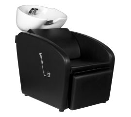 stylish hairdressing salon.  very comfortable, it fits perfectly into the interiors of elegant living rooms.  very stable and solid. upholstery of the highest quality black eco-leather. gray car wash base.