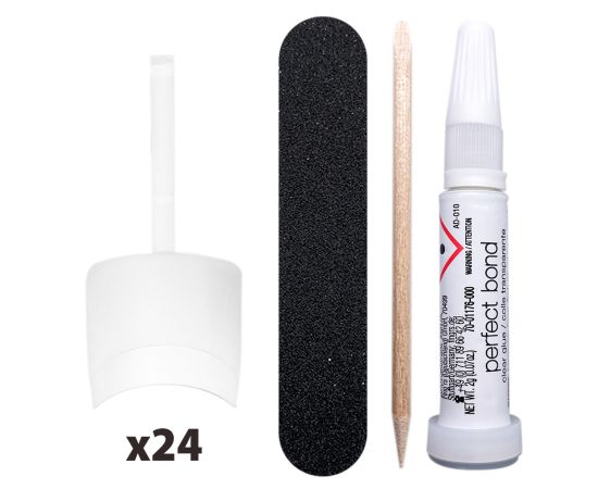 Έγχρωμα ψεύτικα νύχια press-on, 24 τεμάχια + Kόλλα για ψεύτικα νύχια + Λίμα νυχιών + Μανικιούρ-πεντικιούρ wooden sticks
