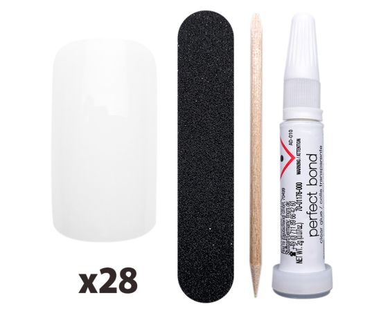 Έγχρωμα ψεύτικα νύχια press-on, career natural nails, 28 τεμάχια + Kόλλα για ψεύτικα νύχιαα + Λίμα νυχιών + Μανικιούρ-πεντικιούρ wooden sticks