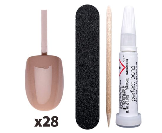 Έγχρωμα ψεύτικα νύχια press-on, flexi colored nails, 28 τεμάχια + Kόλλα για ψεύτικα νύχια + Λίμα νυχιών + Μανικιούρ-πεντικιούρ wooden sticks