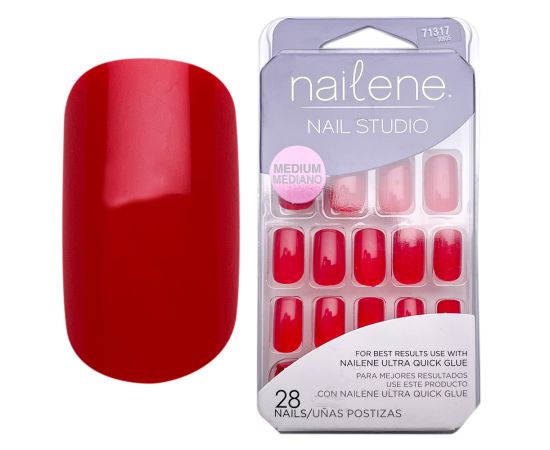Έγχρωμα ψεύτικα νύχια press-on,Nails studio 24 τεμάχια, red + Μανικιούρ-πεντικιούρ wooden sticks