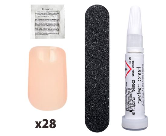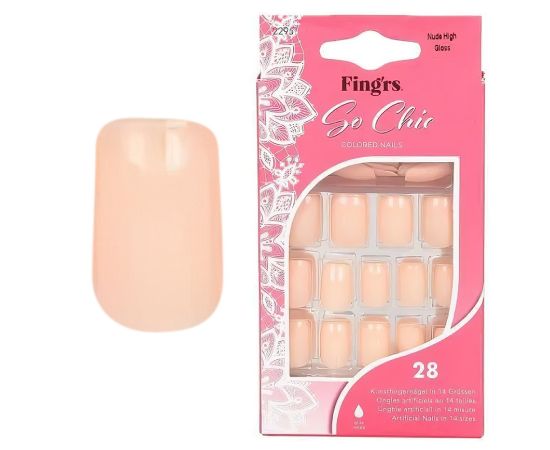 Έγχρωμα ψευτικα νυχια press-on, So Chic Colored Nails, Nude High Gloss, Fingrs, 28 τεμάχια, + Kολλα για ψευτικα νυχια + Λίμες νυχιών + Μανικιούρ-πεντικιούρ wooden sticks