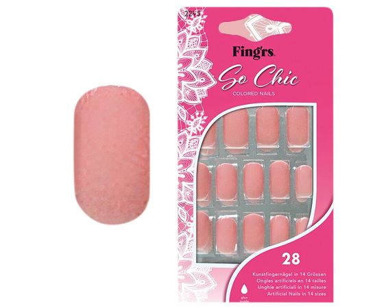 Έγχρωμα ψεύτικα νύχια press-on, So Chic Colored Nails, Pink High Gloss, Fingrs, 28 τεμάχια + Kόλλα για ψεύτικα νύχια + Λίμα νυχιών + Μανικιούρ-πεντικιούρ wooden sticks