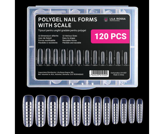 Ειδικά σχεδιασμένες για την κατασκευή νυχιών με Polygel. Είναι κατασκευασμένα από διάφανο και ελαφρώς ελαστικό πλαστικό. Το εσωτερικό του άκρου είναι πολύ λεπτό, και στις δύο άκρες του έχουν ένα σημείο που βοηθά στην αποκόλληση, μετά την κατασκευή του νυχιού.'Ενα tips μπορεί να χρησιμοποιηθεί πολλές φορές. Περιέχει 12 διαφορετικά μεγέθη, διαβαθμισμένα εξωτερικά, που βοηθούν στην επιλογή του σωστού μήκους.