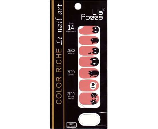 Ένα φύλλο αυτοκόλλητου περιέχει 14 σχέδια που μπορούν να χρησιμοποιηθούν τόσο στο φυσικό νύχι όσο και στο τεχνικό νύχι και στερεώνονται πολύ εύκολα σε κλασικό βερνίκι .