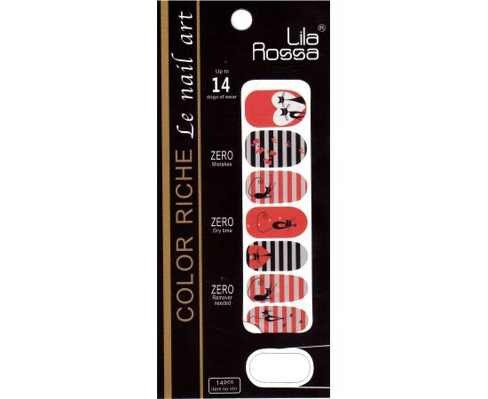 Ένα φύλλο αυτοκόλλητου περιέχει 14 σχέδια που μπορούν να χρησιμοποιηθούν τόσο στο φυσικό νύχι όσο και στο τεχνικό νύχι και στερεώνονται πολύ εύκολα σε κλασικό βερνίκι .