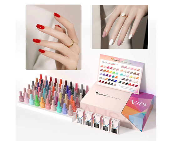 Σετ ημιμόνιμο βερνίκι νυχιών Venalisa VIP 4 , 60 χρωμάτων, +Primer+ Base Coat + 3x Top Coat+ δειγματολόγιο χρωμάτων
