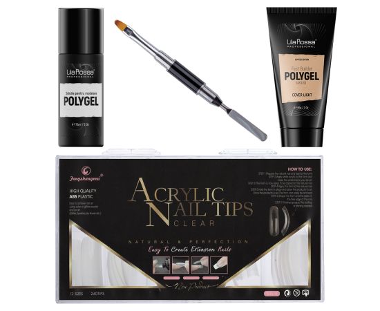 Acrygel σετ Lila Rossa πινέλο + tips + υγρό + premium polygel 2 oz 60 g Cover Light