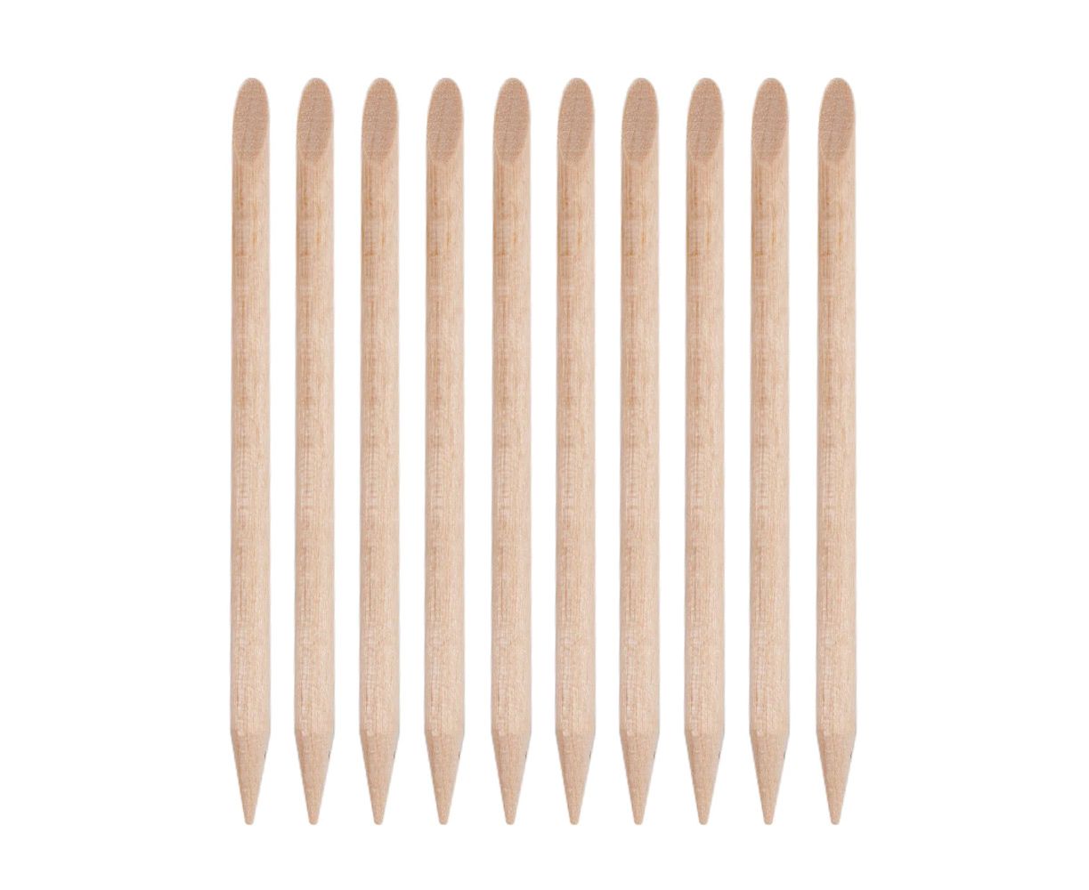 Σετ ξυλάκια 10 - απαραίτητο εργαλείο στον τομέα της τέχνης νυχιών. Είναι κατασκευασμένα από φυσικό ξύλο πορτοκαλιού, πολύ ανθεκτικά και έχουν απολήξεις με διπλή λειτουργικότητα.