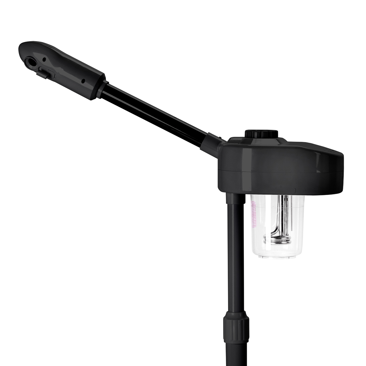 The vapozon is made of durable plastic in shades of black, which makes the device easy to keep clean. The stand is equipped with a height adjustment in the range of 44,5-69 cm, which allows positioning the equipment at the right level to ensure comfort for the practitioner. The vapozon nozzle can be rotated, which increases the range of possible settings. The five-arm base with rubber wheels improves mobility, making it easier to freely move the device.