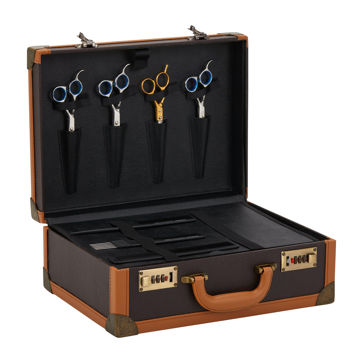 This elegant brown suitcase will be a great choice for any mobile hairdresser or barber. From now on, all the necessary accessories will be readily available and organized for every trip.