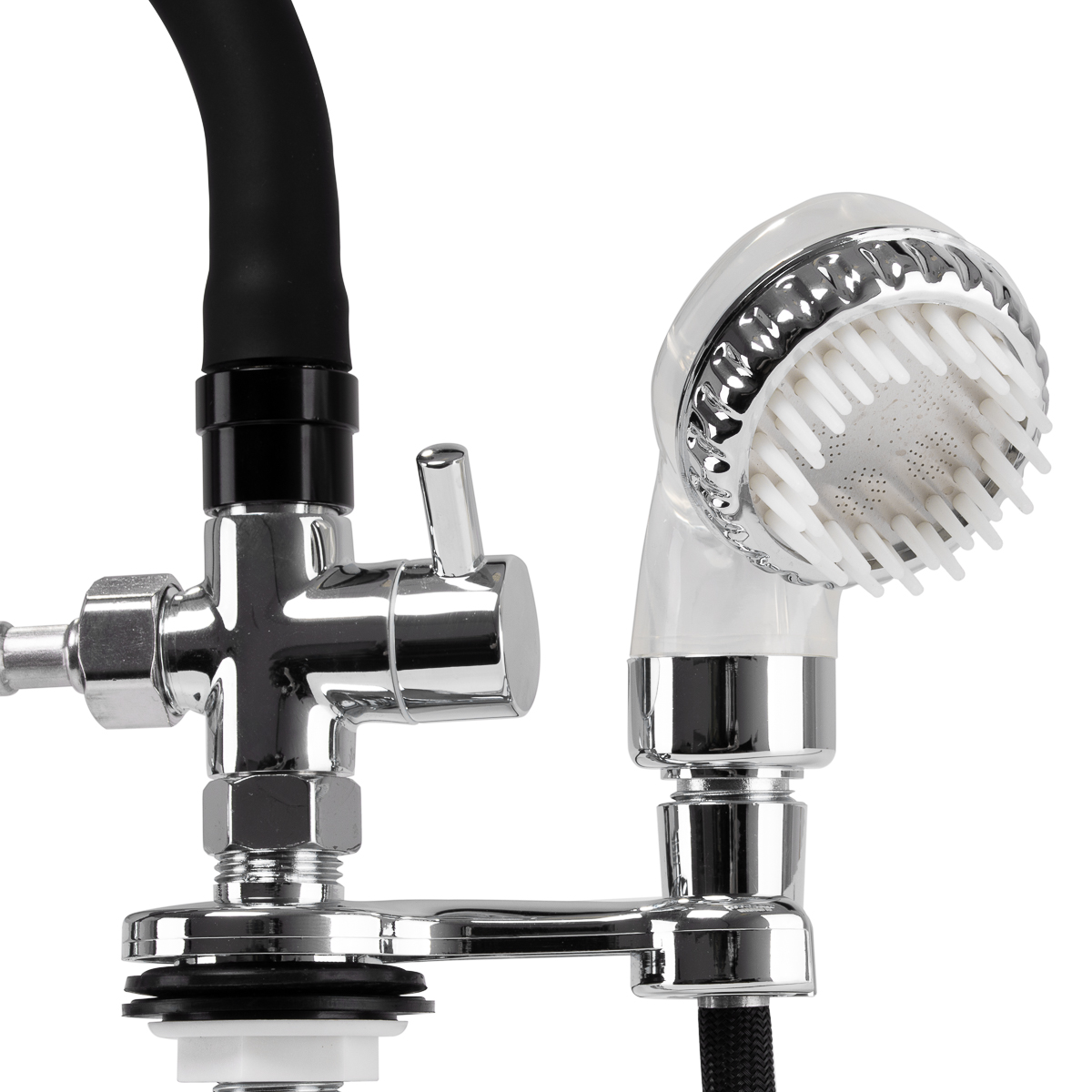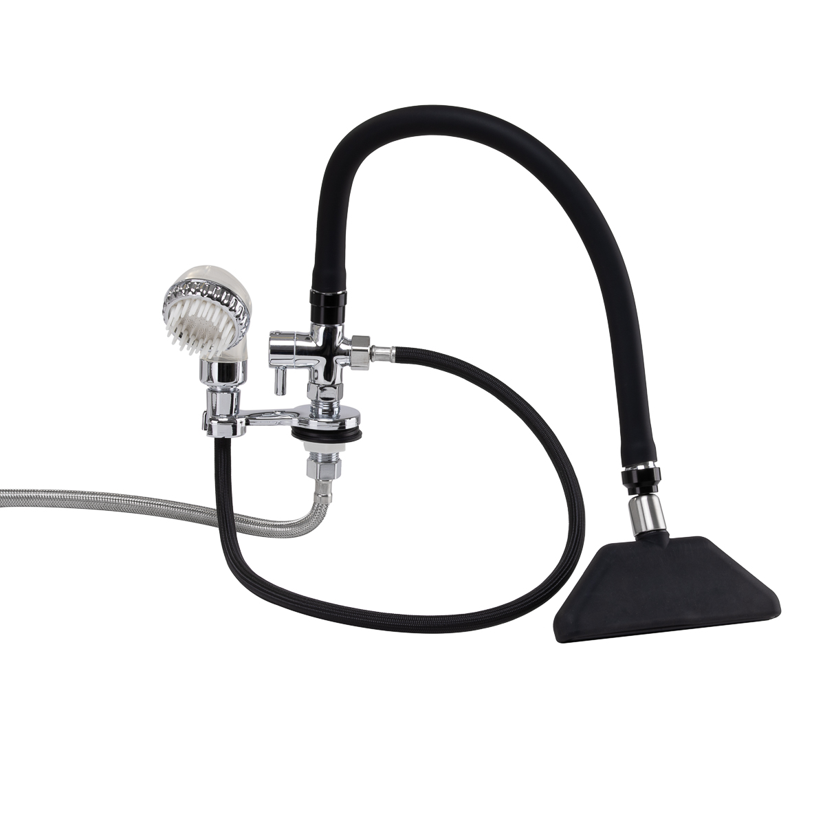 Waterfall faucet with mixer, designed for hairdressing washers, is an indispensable part of professional salon equipment. It facilitates convenient connection of water to the car wash and provides comfort to both the hairdresser and the client. Thanks to the included steel braided connection hoses, the faucet is characterized by high durability and resistance to abrasion.