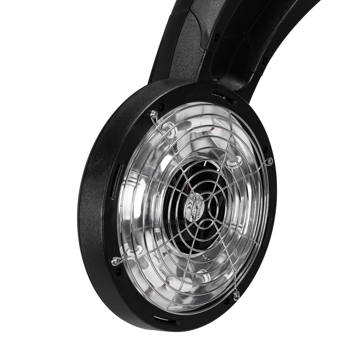 Futuristic housing made of durable plastic in shades of black gives the device a modern and unique look, so that it will match most interiors. It is also durable and easy to clean. Stability is provided by four-arm base with wheels, what also guarantees mobility. Adjustable in the range of 142-162 cm, the tripod guarantees comfortable work and adapts the device to individual needs.
