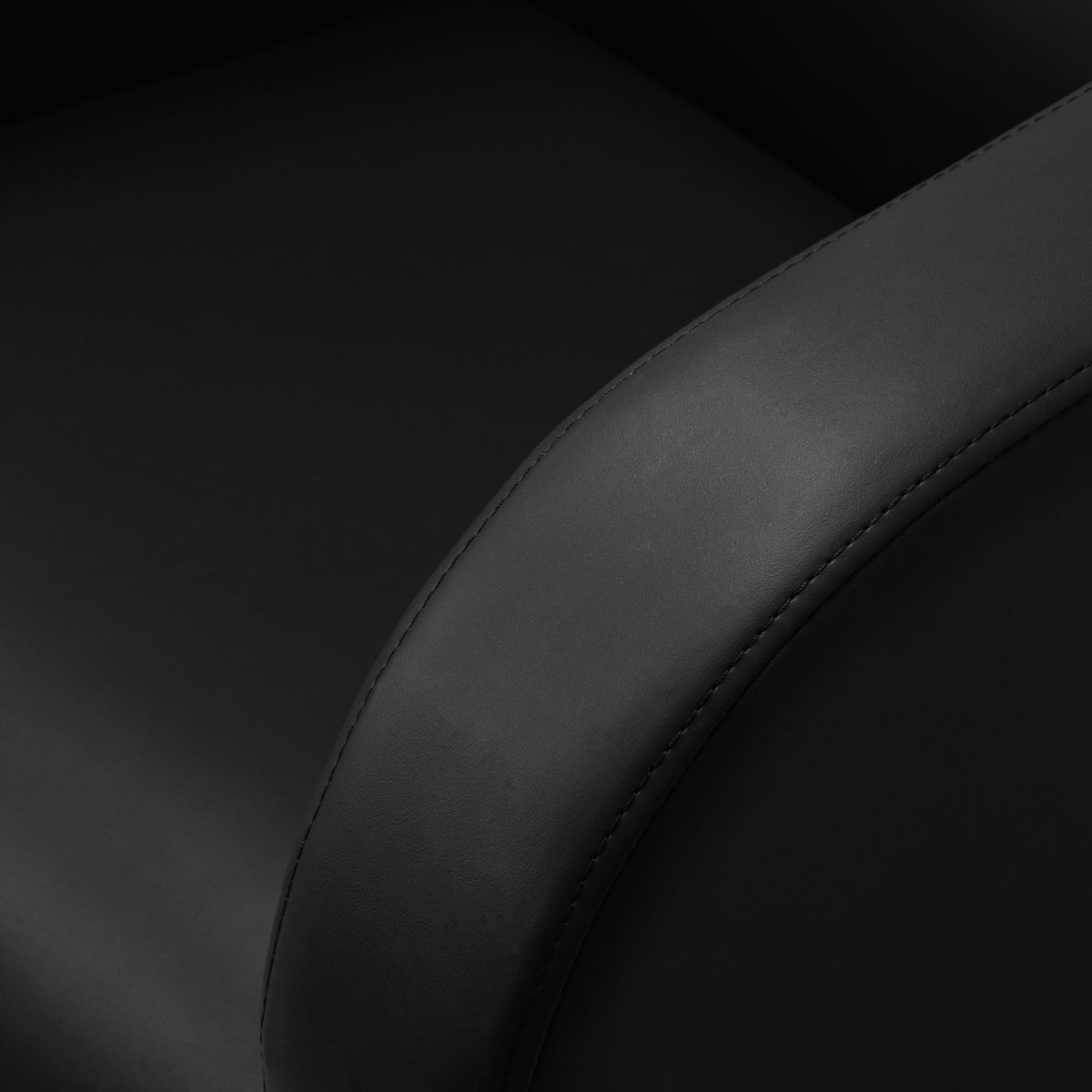The Gabbiano Sylvia hairdressing wash station has been designed with the aim of comfortably performing care or colouring treatments in mind, as well as providing the client with a comfortable position during longer procedures. It catches the eye with its simplicity and geometric form, while the perpendicular lines of the seat and armrests give it a modern feel. The backrest placed at an optimal angle promotes excellent support for the spine. The appropriately profiled seat filled with durable foam ensures high comfort of use, and the upholstered armrests allow for the correct positioning of the client's shoulders. The synthetic leather cover in shades of black guarantees many years of durability and ease of cleaning. The elegant, minimalist look of the wash station gives the interior a unique touch. The set includes complete fittings in shades of black and chrome, including a faucet, shower head and dedicated hoses to provide a complete set of tools for work.