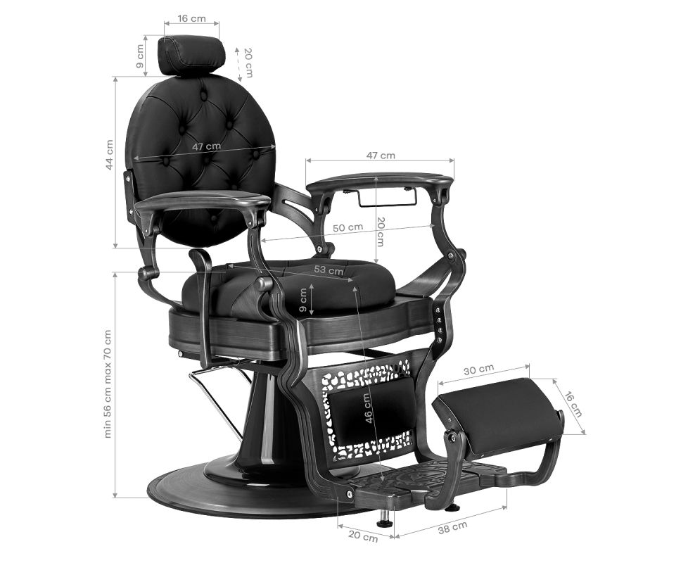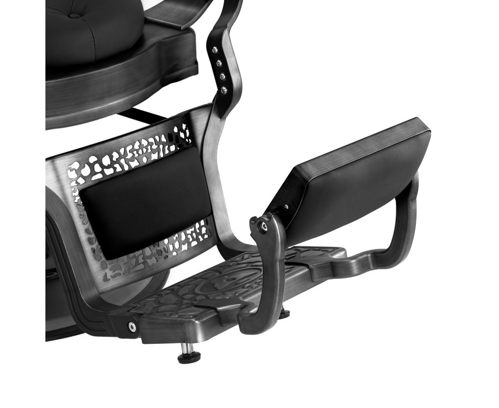 A solid base construction ensures stability and high comfort of use. The seat filling made of durable, deformation-resistant foam and the upholstery made of pleasant-to-touch synthetic leather with a matte finish ensure long-term durability and comfortable use of the furniture. The materials used also make the equipment moisture-resistant, durable, and easy to clean. The cover in shades of black with quilting and decorative buttons, along with the decorated footrest, gives it a unique character. The chair, with its distinctive design referencing vintage style, fits perfectly into the atmosphere of barbershops, enhancing their unique ambiance.