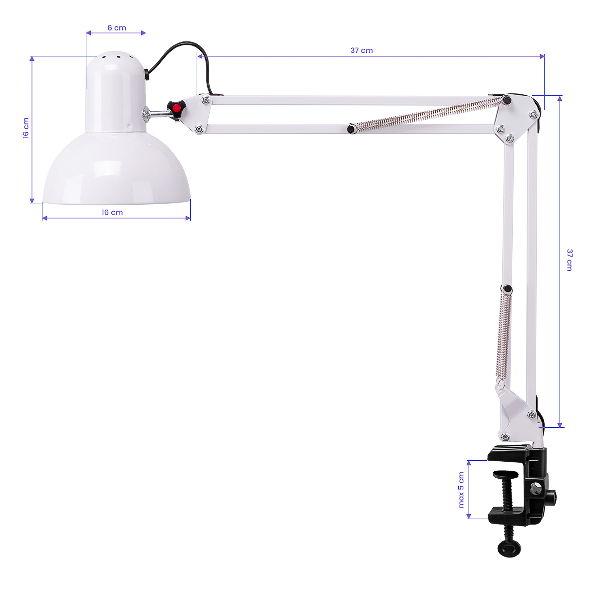 Thanks to the handle that works on the principle of a vice, the lamp can be easily mounted to the tabletop. The maximum opening of the handle is 5 cm, which allows for adjustment to most work surfaces. The possibility of mounting the lamp in various stand settings provides great flexibility and allows for precise adjustment of its position. As a result, the lamp offers wide personalization possibilities, allowing for adjustment of the lighting to the individual needs of the user.