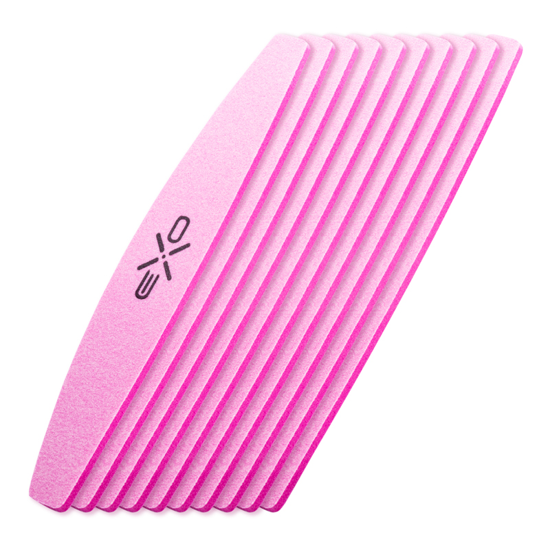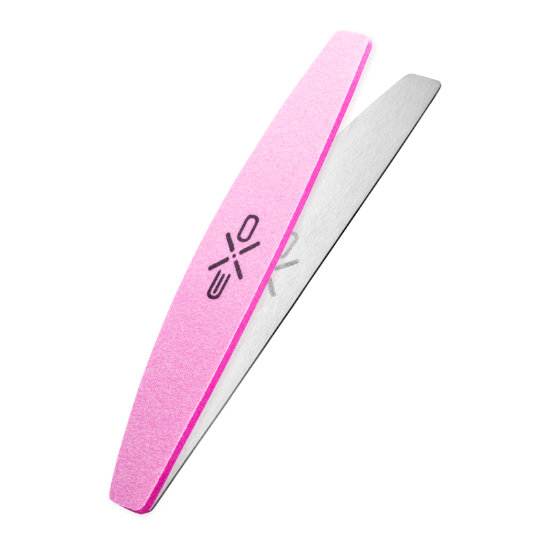 professional exo nail polisher with a metal core and replaceable overlays facilitates work while maintaining sterility. 240 grade nail polisher and the popular crescent shape - it is a medium grade polisher designed to smooth and eliminate scratches on acrylic, gel and acrylic gel styling after filing with a file. you can also use it to matt and even out the natural nail plate before making a manicure. the crescent-shaped polisher is a unique, ergonomic combination of two shapes - straight and banana. thanks to this, working with them is extremely comfortable. allows for precise processing of the mass at the skins and reaching hard-to-reach places. a modern solution, a better structure made of the highest quality raw materials, guarantees long-term use.