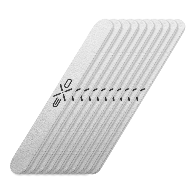professional exo nail file is a product necessary in the basic work of a stylist. a nail file with a 100/180 gradation and a classic straight shape - it is a narrow file with a medium gradation intended for styling and preparing a natural nail plate for a manicure. universal, simple shape with gently rounded edges allows for precise maneuvering around the skins without the risk of damaging them. the modern, better structure of the paper file, made of the highest quality raw materials, guarantees long-term use.