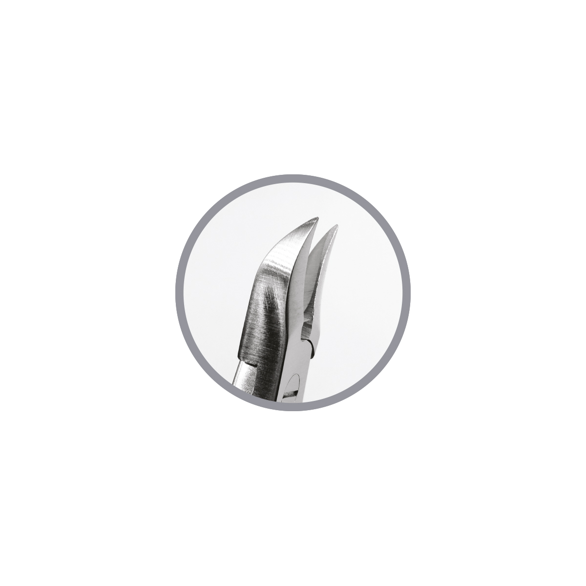 Pliers with a curved blade (side) are made of the highest quality stainless steel. This is a durable and precise tool with a sharp cutting surface (1,6 cm). The special design of the blade makes the pliers excellent for shortening semicircular nails. The model is equipped with a protected two-spring mechanism. The tool can be sterilized in an autoclave. The pliers are recommended especially for use in cosmetic and podiatric surgeries.