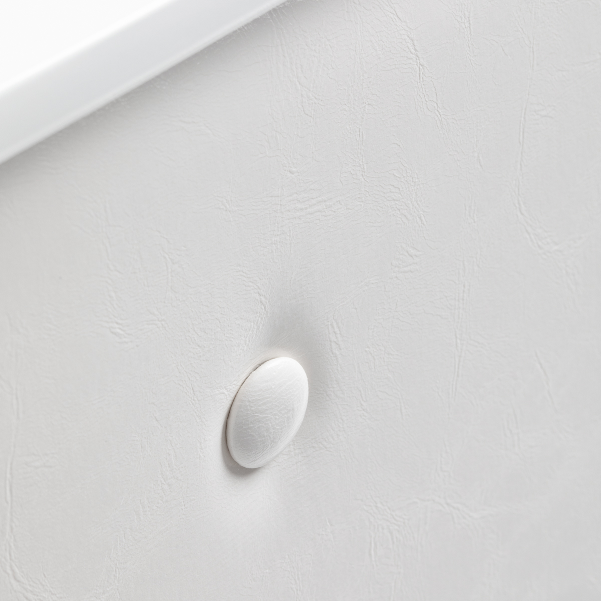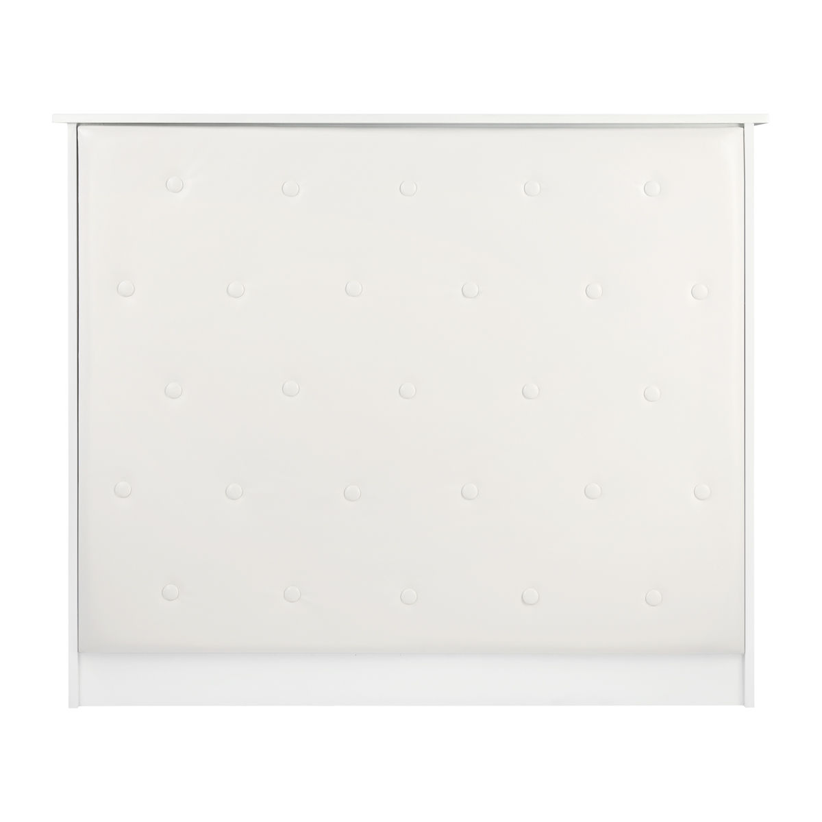 This piece of furniture is made of high-quality, durable laminated board in shades of white, and the smooth surfaces are easy to keep clean – in case of contamination, just wipe them with a damp cloth. The decorative front part has been upholstered with synthetic leather in shades of white, which gives it a stylish look, ensures durability and ease of cleaning. Decorative buttons further add elegance and uniqueness, emphasizing the character of the interior. The reception desk was carefully made, it is stable, and the materials used allow for many years of effective use.
