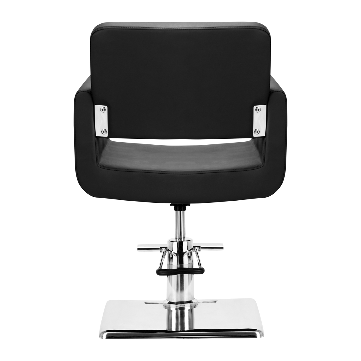 a modern hairdressing chair with a unique design, perfectly suited to modern salons. specially contoured to provide the client with a comfortable position during the treatment. adjustable in the vertical plane. very stable. upholstery made of high-quality, smooth eco-leather. black color.
