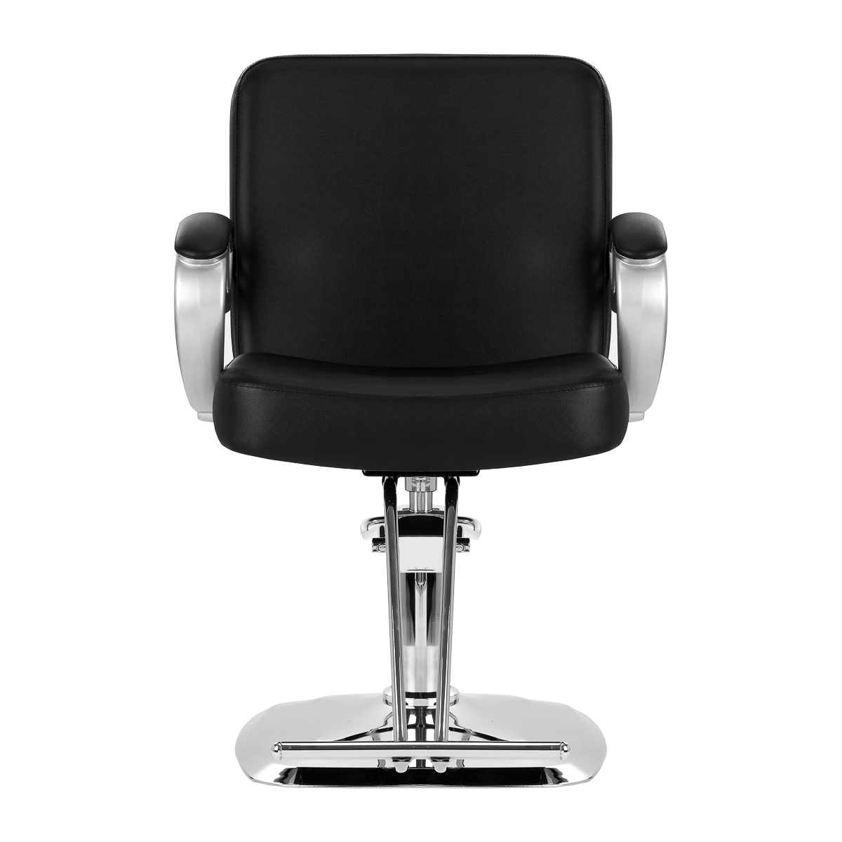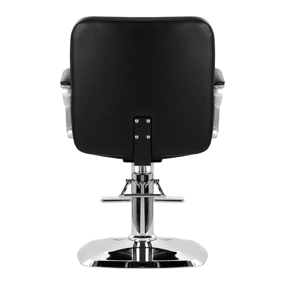 The solid base ensures stability during use, and its mirror-finish surface is easy to keep clean. The comfortable seat is filled with durable foam to ensure high comfort of use, even during many hours of treatments. Partially upholstered armrests are a visually interesting element, and thanks to appropriate shaping, they allow for the correct positioning of the customer's shoulders. Thanks to this, he does not hide his head in his shoulders or slouch – which makes it much easier to perform precise procedures, including haircuts. Equipping the chair with a full rotation mechanism makes the hairdresser's work more effective and comfortable.