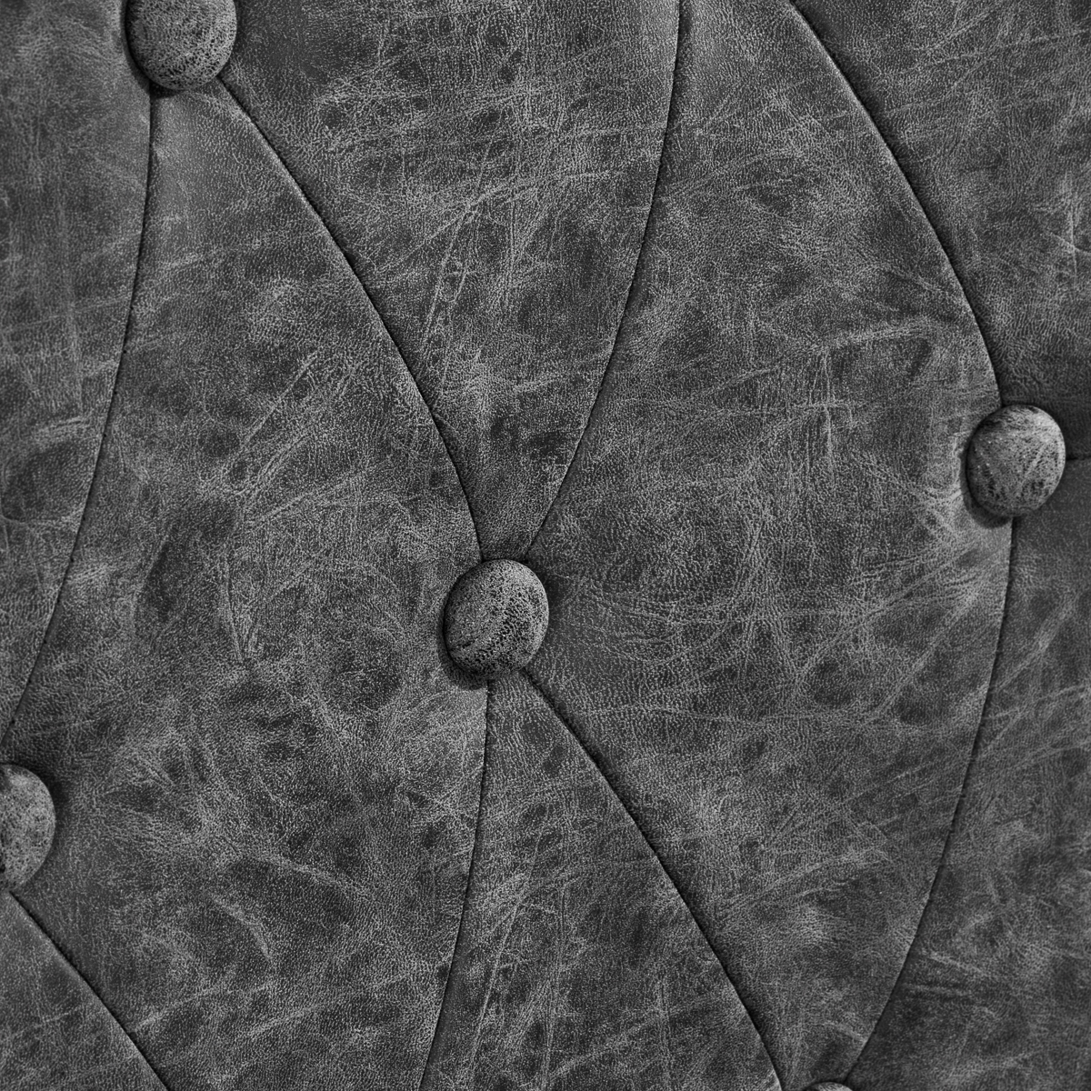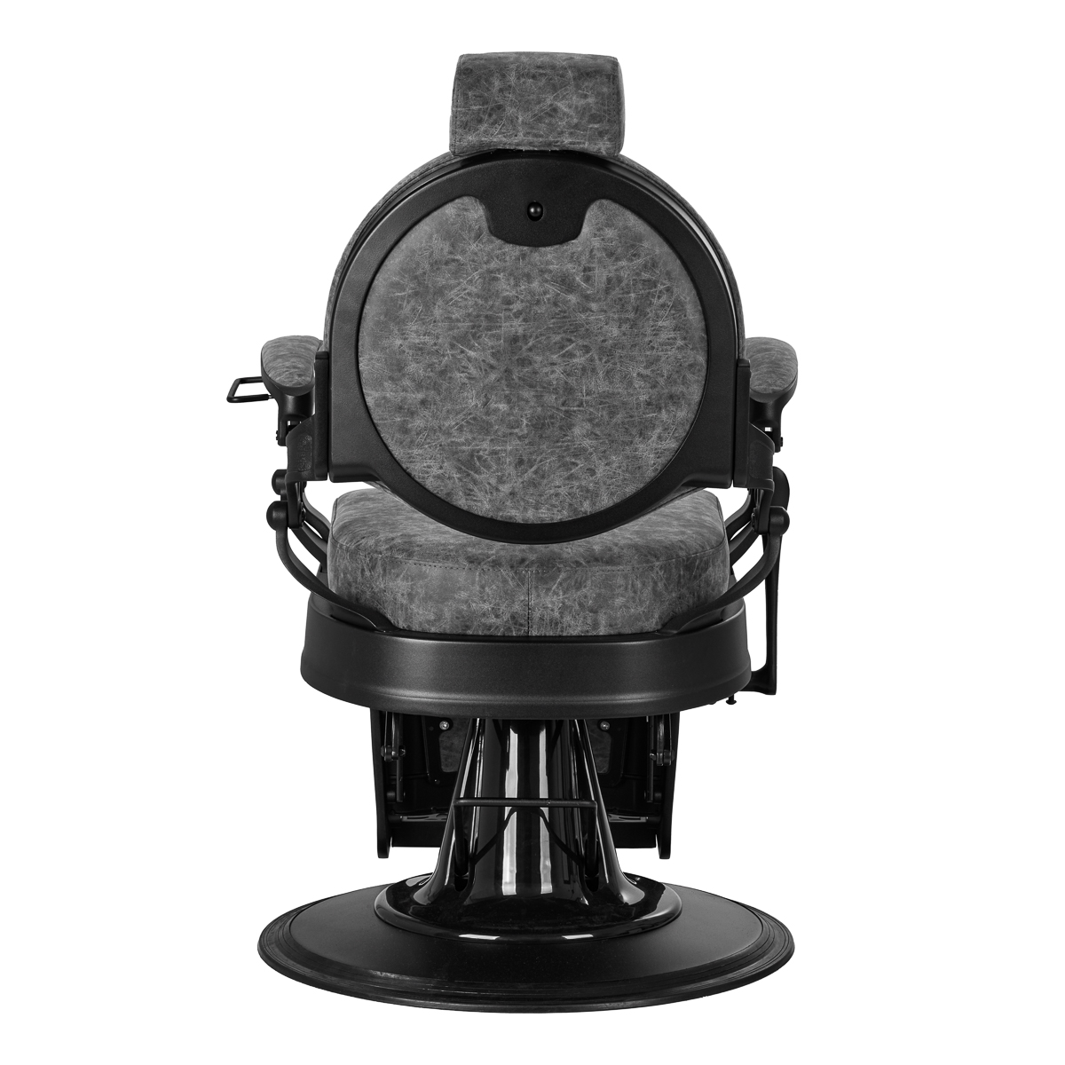 The solid construction of the base ensures stability and high comfort of use. The seat filling is made of durable, deformation-resistant foam and the upholstery is made of pleasant-to-touch synthetic leather with a matte finish with an aged effect, ensuring the durability of the furniture and its comfortable use for a long time. They also make the equipment resistant to moisture, durable and easy to clean. The covering in shades of gray with quilting and decorative buttons gives it a unique character. The chair with a characteristic design, referring to the vintage style, perfectly fits the atmosphere of barbershops, emphasizing their unique atmosphere.