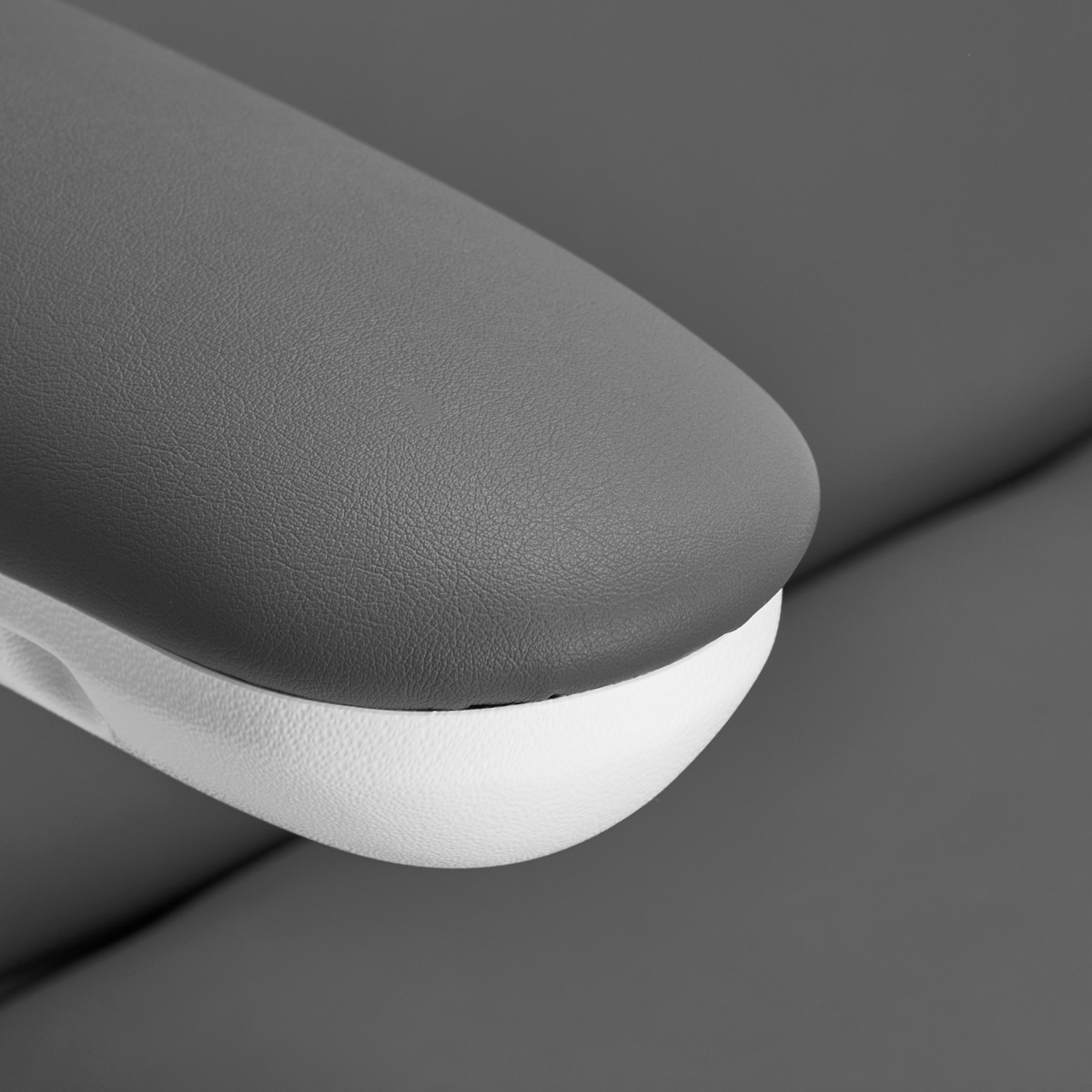 The headrest is extendable, which helps to adjust the equipment to the needs of users of different heights, providing stable head support during treatments. The armrests, movable in 180º, make it easy to take a seat and provide comfortable access for the person performing the treatment. The solutions used significantly affect the high comfort of use and work ergonomics.