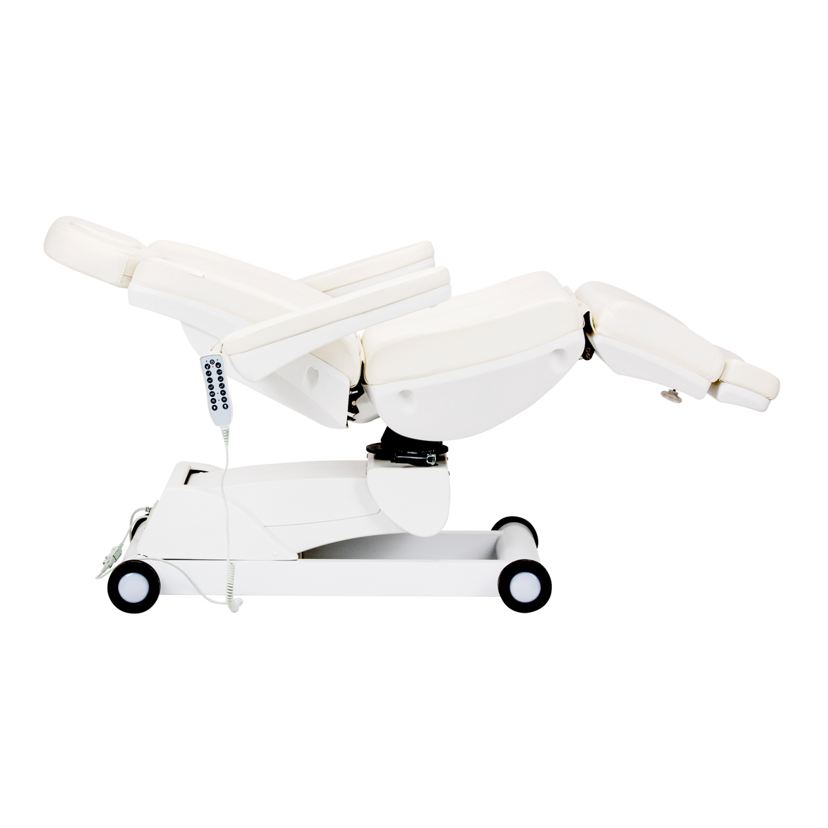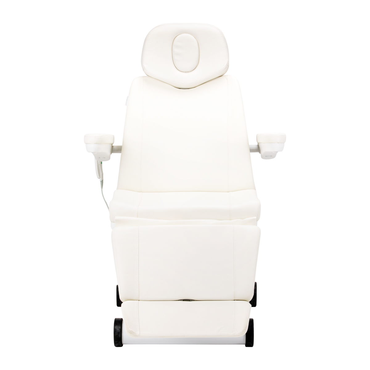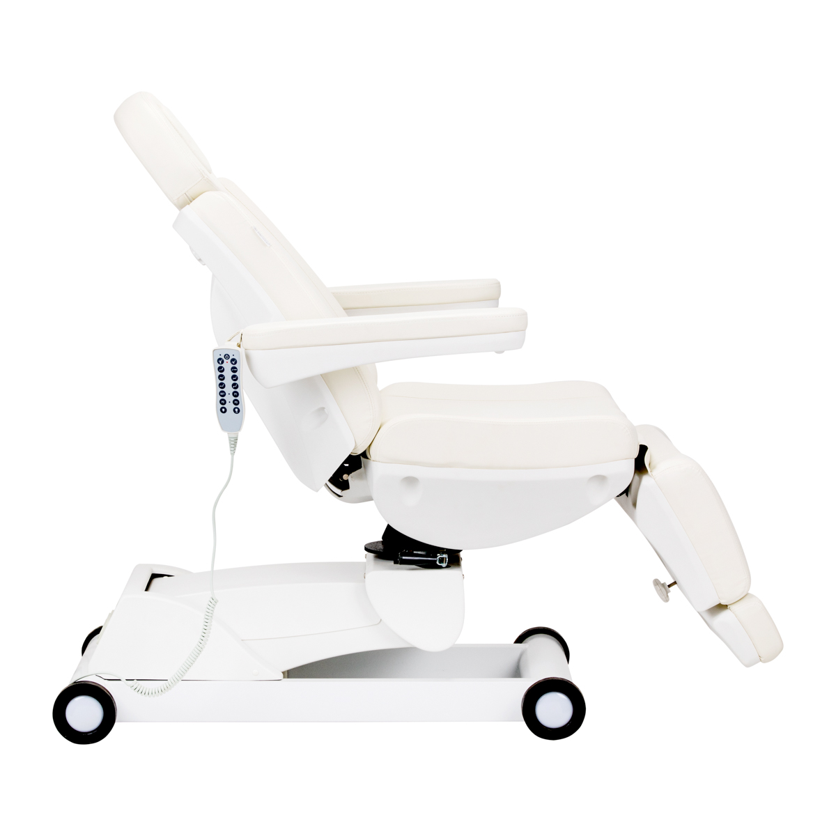 The Azzurro electric chair is equipped with 4 actuators, controlled by a wired remote control. It is distinguished by the ability to easily save customized position settings, so you can quickly return to them with the touch of a button. It is characterized by stability, considerable customization capability and versatility, so it will work well in many specialized clinics and beauty salons.