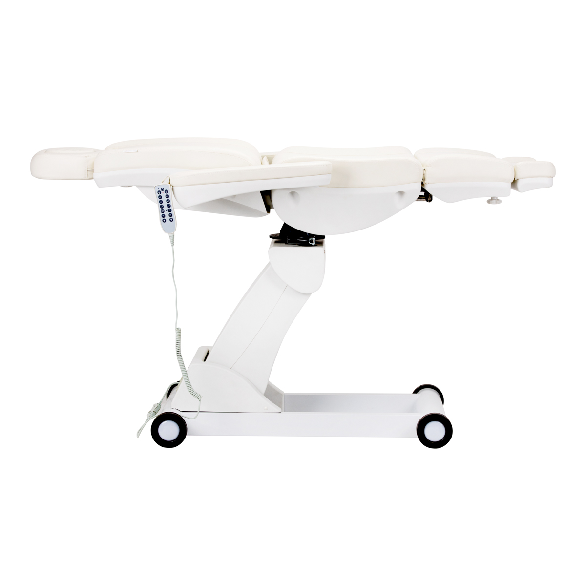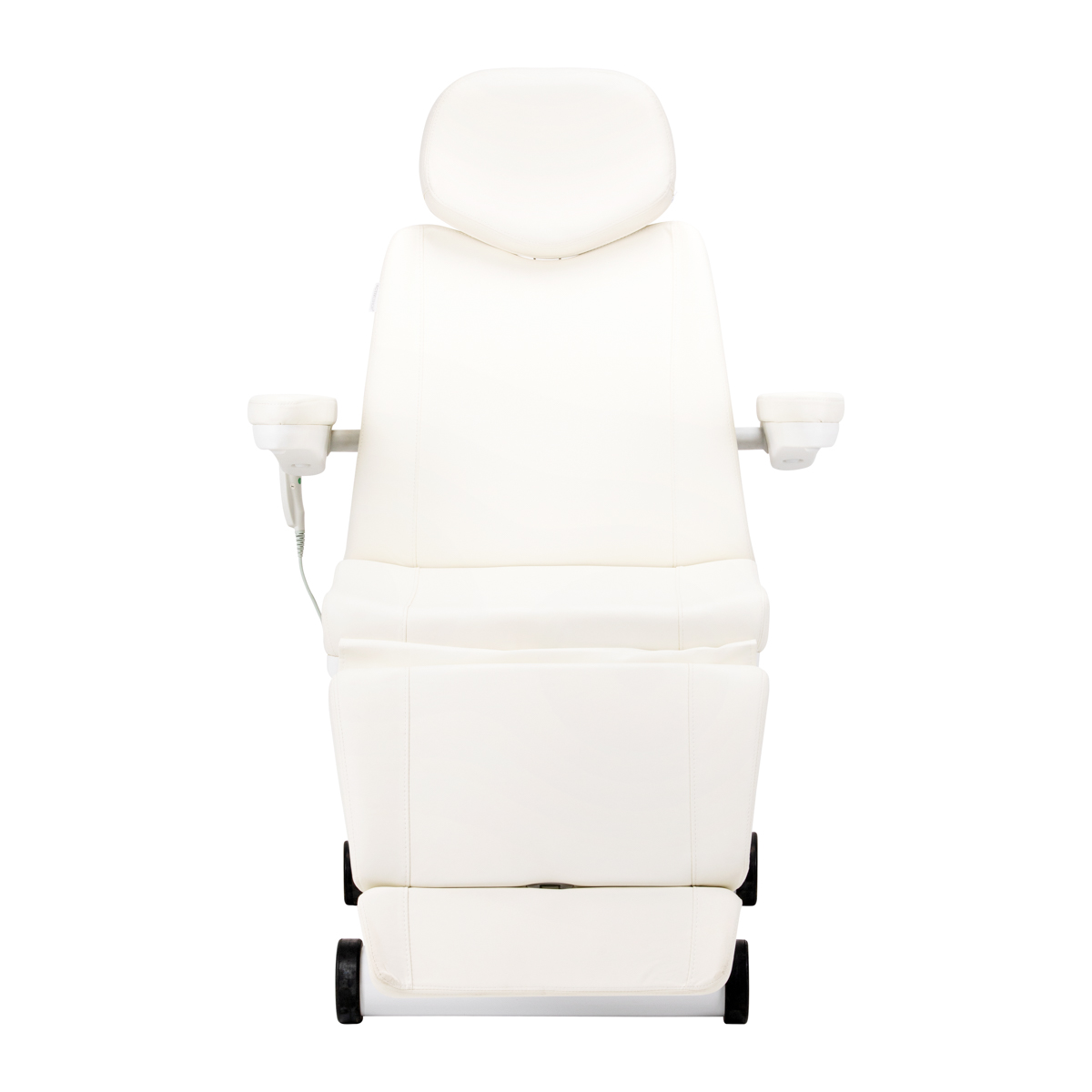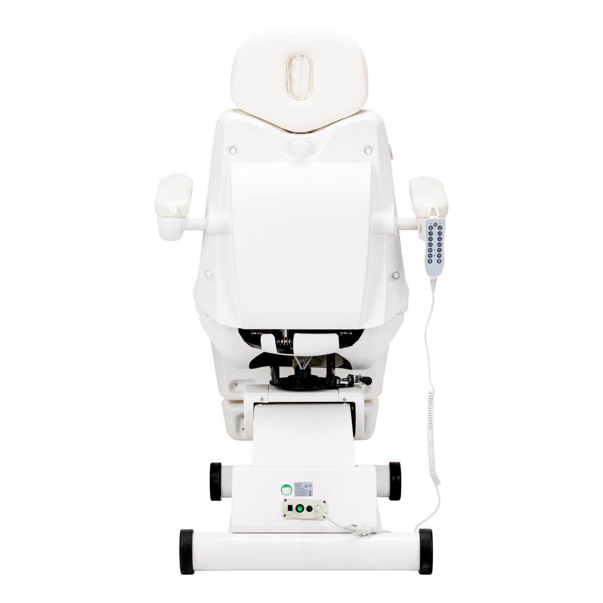 The Azzurro electric chair is equipped with 4 actuators, controlled by a wired remote control. It is distinguished by the ability to easily save customized position settings, so you can quickly return to them with the touch of a button. It is characterized by stability, considerable customization capability and versatility, so it will work well in many specialized clinics and beauty salons.
