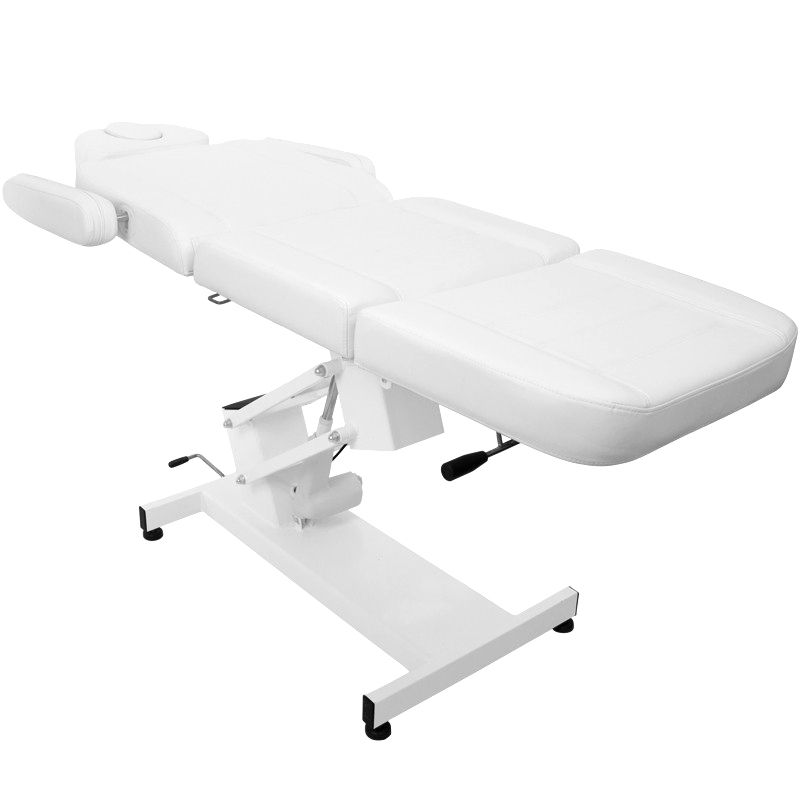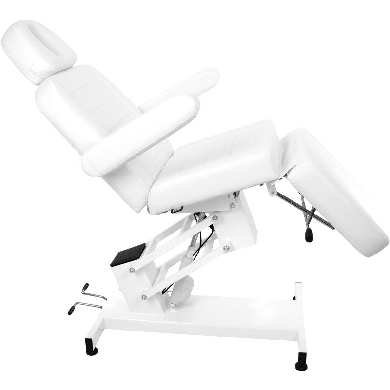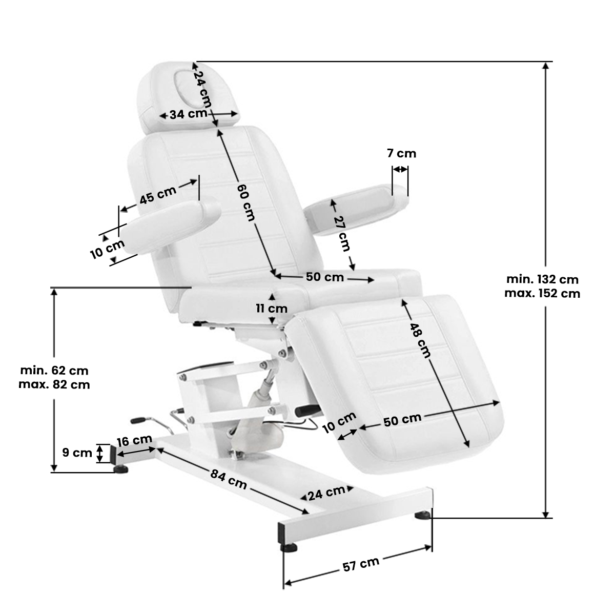 cosmetic chair with up-down adjustment by means of a remote control. two pedals in the rear part of the base enable smooth adjustment of the backrest and cradle. a comfortable armchair, folding up to 180 degrees, can be successfully used as a daybed. a blind hole in the headrest that allows you to take a comfortable position during treatments, among others massage. The seat is covered with high-quality and easy-care eco-leather. Manually adjustable footrest. the possibility of raising the armrests upwards, which makes it easier for the customer to take a seat on the seat.